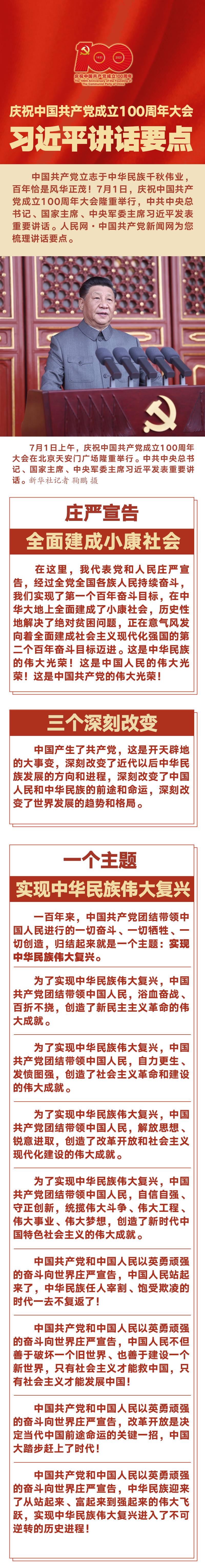 庆祝中国共产党成立100周年大会习近平讲话要点