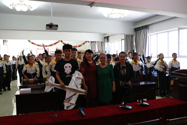 在102中学的会议室里,整齐地坐着近一百名初中学生,他们好奇地盯着前来讲座的老师和同学,以及大哥哥们手中的航模和插座模型。