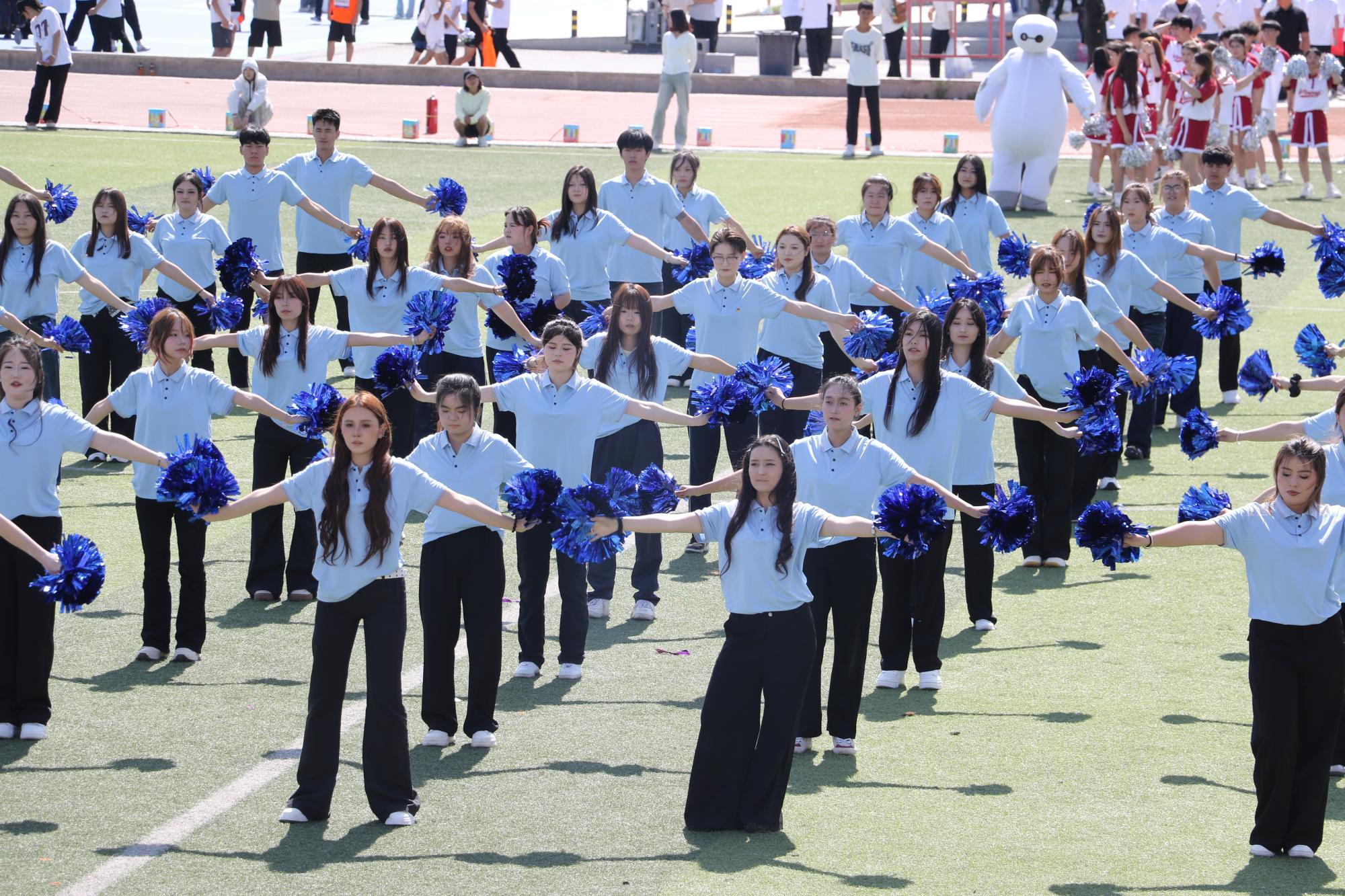 精彩的团体操方阵表演闪亮登场。音乐在跳动,青春在飞扬,同学们用灵动的舞姿与饱满的热情,为运动会献上绚丽的开场华章。他们用汗水诠释着团队协作的力量,用笑容传递着对未来的信心,用舒展的肢体语言和整齐的动作,诠释着新时代大学生对健康体魄的追求与青春宣言,展现了学院师生良好的精神风貌,赢得了现场观众的阵阵掌声!