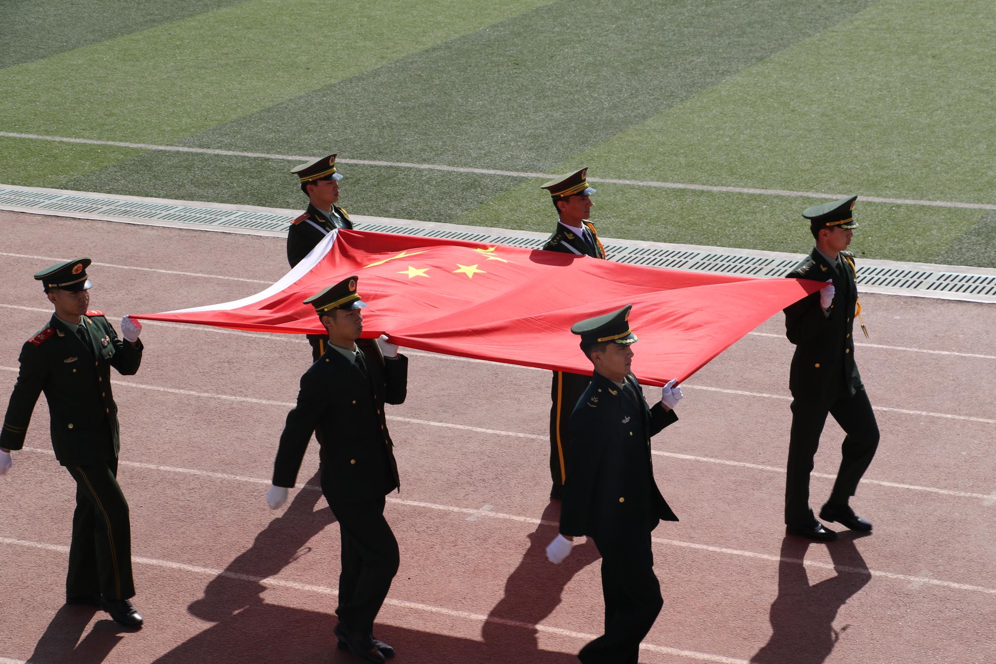 入场式后,举行庄严的升旗仪式。伴随着激昂的国歌声,鲜艳的五星红旗冉冉升起,嘹亮的国歌声响彻整个校园,强烈的民族自豪感与爱国情怀在心中激荡。
