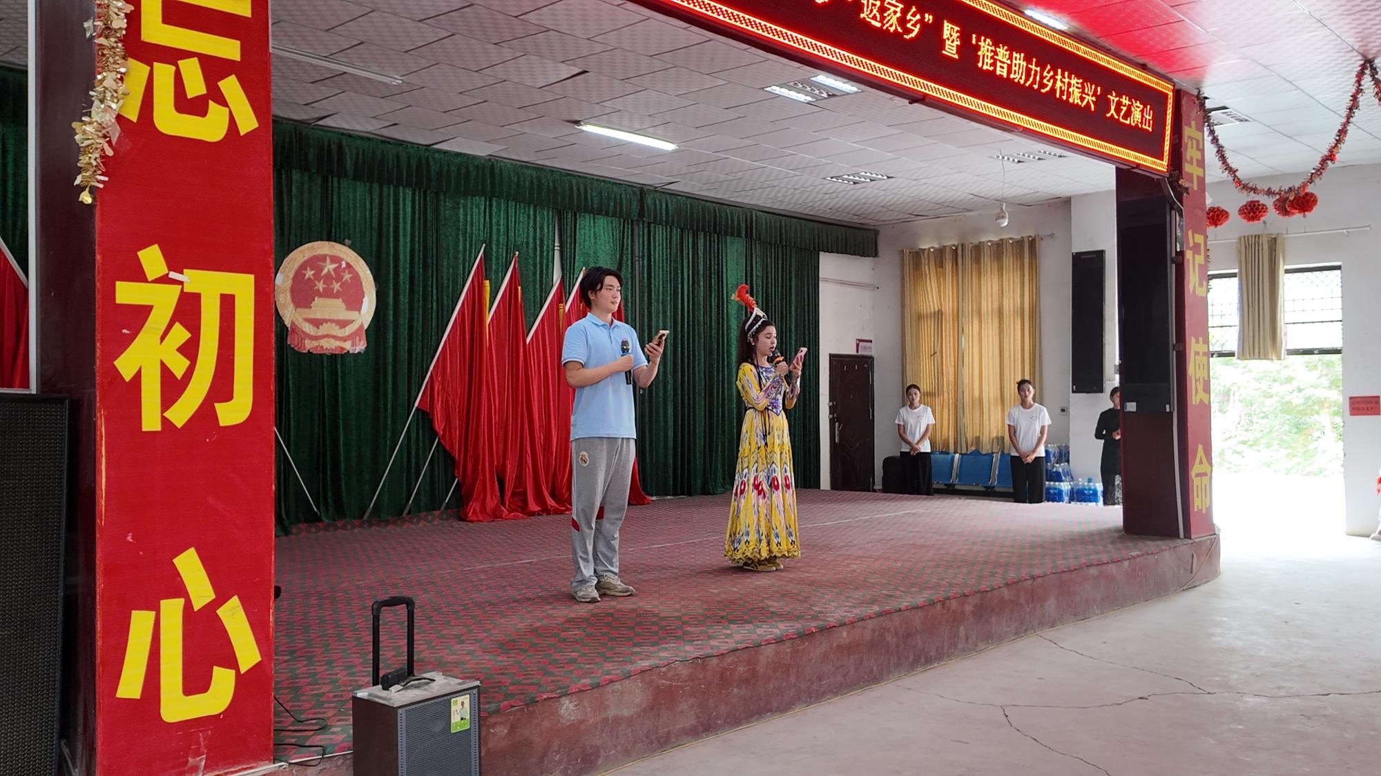 青马颂家乡,文化深扎根。学院2025年度暑期“三下乡・返家乡” “推普助力乡村振兴”文艺演出将此次实践活动推向了高潮。志愿者与当地驻村工作组、小学生联合登台表演,独唱、民族舞、古典舞等精彩节目轮番上演。舞台上,大家用饱满的热情、优美的舞姿和动听的歌声歌颂美丽家乡,传递着对祖国、对党、对家乡的热爱之情,现场观众掌声不断。这场文艺演出不仅丰富了当地群众的文化生活,也进一步增进了大家对中华文化的认同。