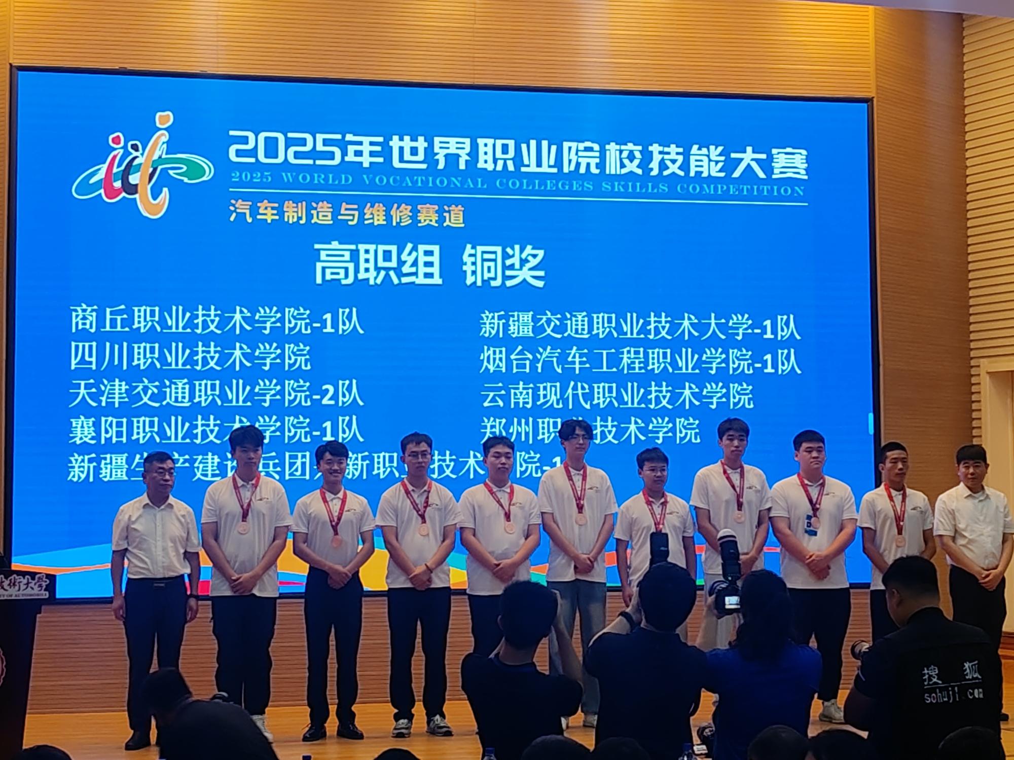 2025年世界职业院校技能大赛总决赛汽车制造与维修赛道(高职组)争夺赛于8月31日在长春汽车职业技术大学圆满落幕。由我校熊世豪、吴玉沁、孙女明、王毅帆四位同学组成的参赛队,凭借扎实的专业技能、出色的问题解决能力和稳定的现场发挥,在全国186支参赛队伍、700余名选手中脱颖而出,荣获大赛铜奖。