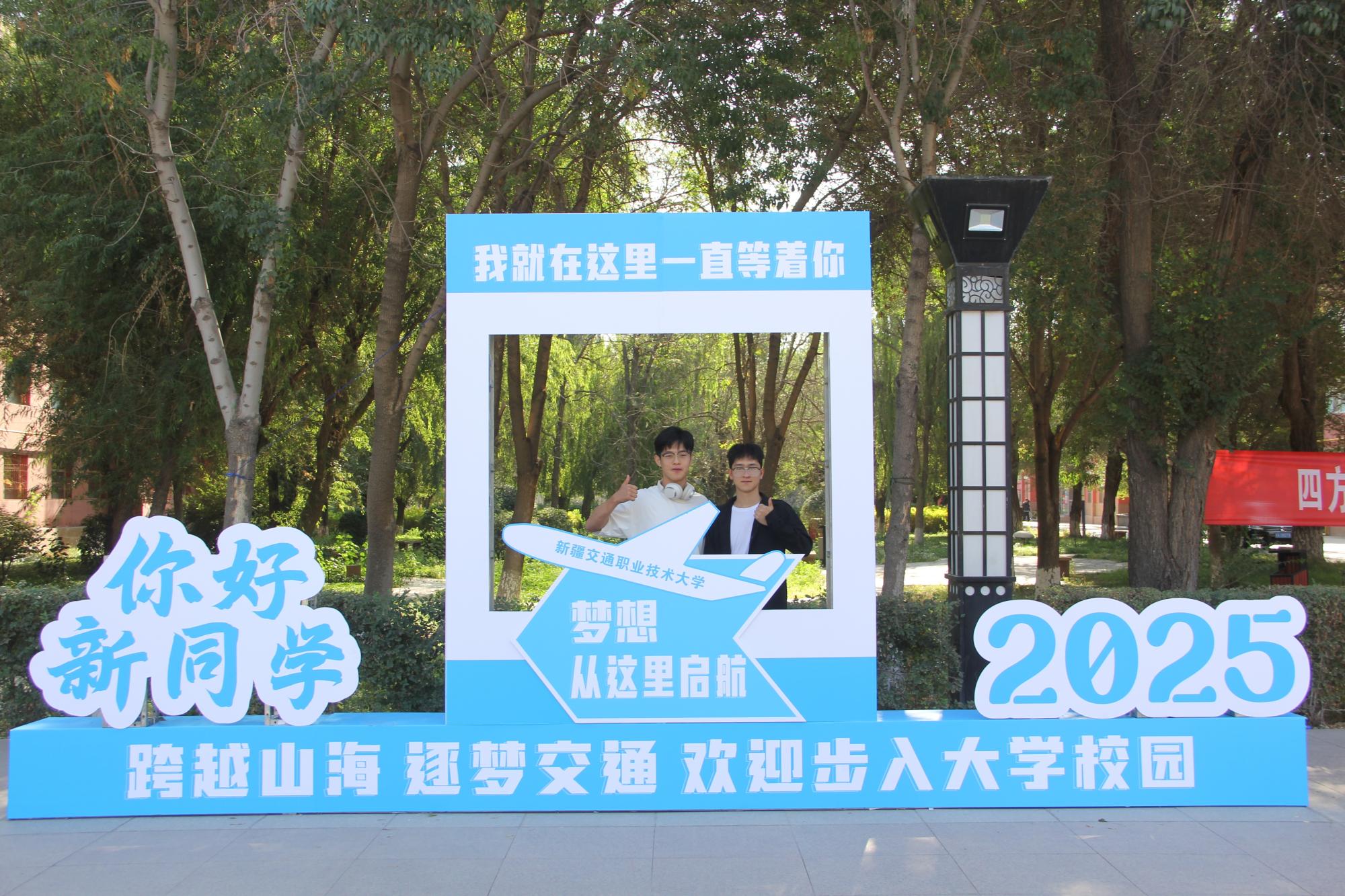 许多同学在主题展板、合影框前打卡留念,用镜头记录下踏入大学校园的第一份喜悦,定格属于自己的“开学初体验”。