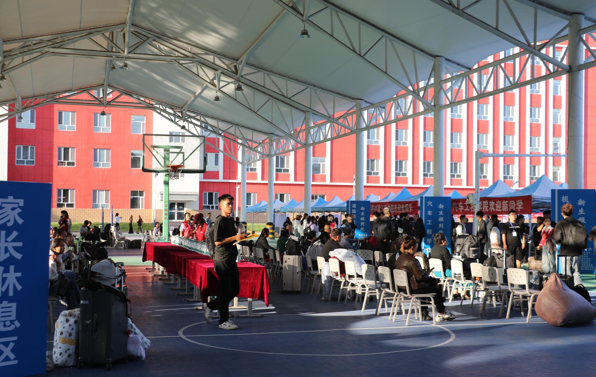 清晨的校园充满活力,数百名师生志愿者早早坚守在各个接待点,他们穿梭于机场、火车站、报到处与宿舍楼之间,主动为新生搬运行李、耐心指引路线、细致解答问题。一句句热情的问候、一个个忙碌的身影,让初来乍到的新生瞬间消除了陌生感,感受到了家一样的温暖。