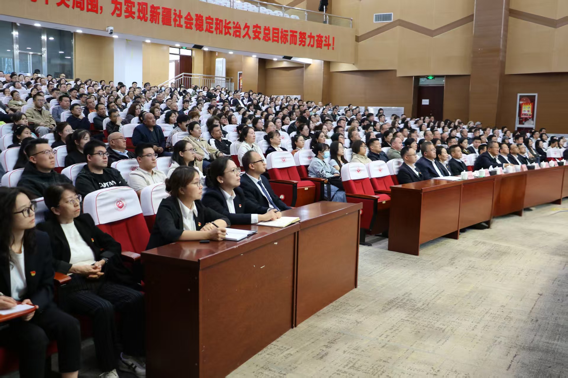 毕德国结合自身工作实践经验,以《牢记为党育人 为国育才使命 筑牢高校教育阵地反分裂斗争坚强防线》为题,将法治思维与教育使命深度融合,为全体教职工带来了一堂理论与实践交织的思政课。授课中,他重点围绕党的治疆方略,从历史与现实角度分析了新疆面临的形势与任务,重点阐述了高校在落实党的治疆方略中的特殊使命,同时结合实际,着重分析了筑牢高校教育阵地反分裂斗争坚强防线的重要性和实践路径。强调高校要完整准确全面贯彻新时代党的治疆方略,落实立德树人根本任务,坚决守好育人阵地,确保校园安全稳定。