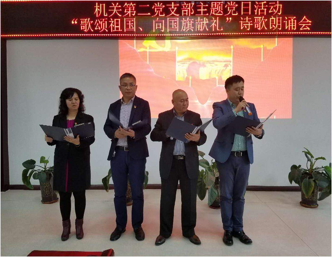 10月17日下午,机关第二党支部组织开展了“歌颂祖国 向国旗献礼”主题党日诗歌朗诵会,支部全体教职工参加了活动。