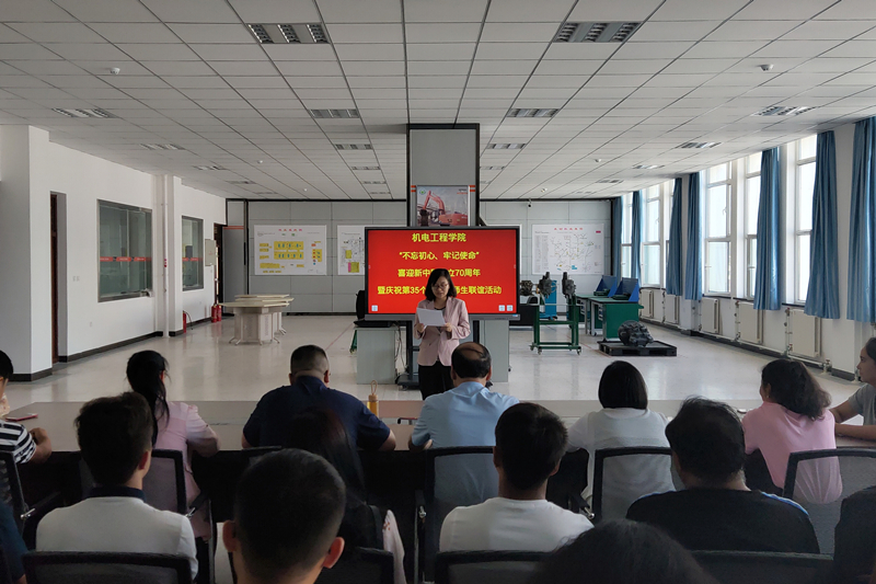 9月9日下午,机电工程学院党总支联合分院工会在中辰学院开展了“不忘初心 牢记使命”喜迎新中国成立70周年暨庆祝第三十五个教师节师生联谊活动;机电工程学院副院长罗江红主持活动。