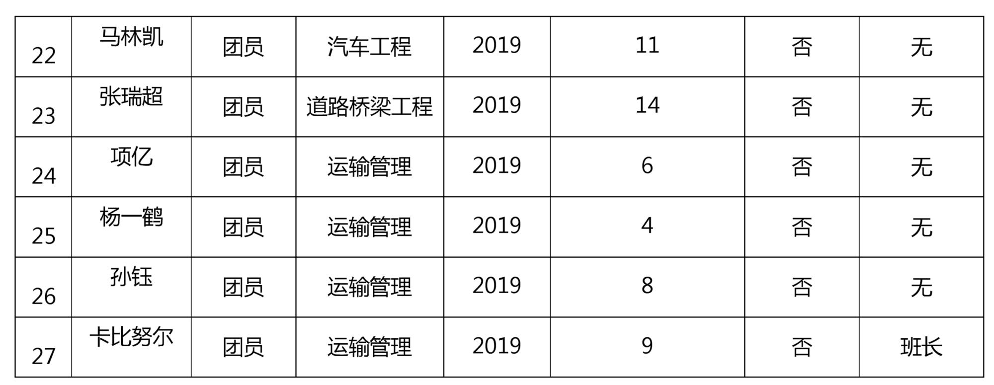 四、校级组织工作人员名单