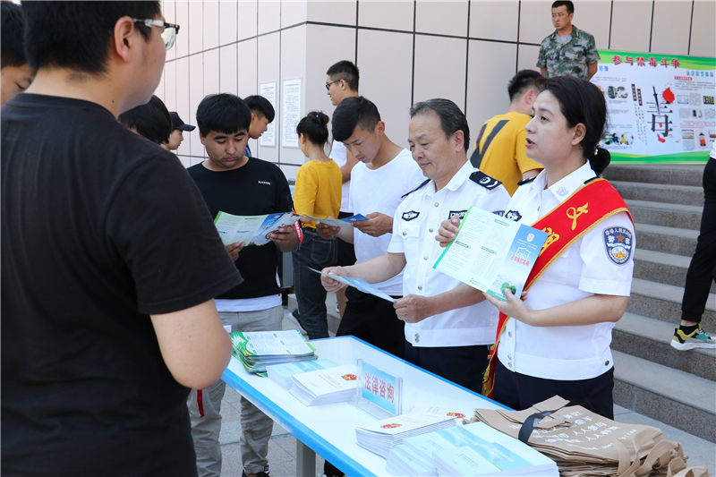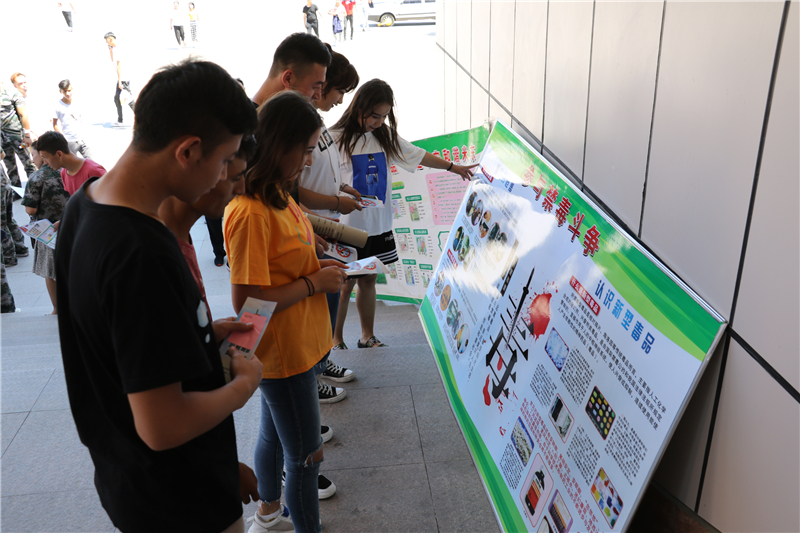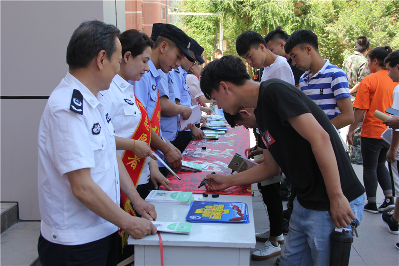 按照国家禁毒委《关于加强新时代全民禁毒宣传教育工作的指导意见》要求,为响应自治区交通厅、自治区教育厅、自治区人社厅《关于深入开展2019年“全面禁毒宣传月”活动的通知》,进一步加大禁毒宣传教育的力度,增强大学生拒毒、防毒的意识,2019年6月26日,学院保卫处牵头联合米东区禁毒办、米东区依法治区办、米东南路管委会、南路派出所、龙泉社区在学院学生综合食堂门前开展了本次禁毒宣传教育活动。