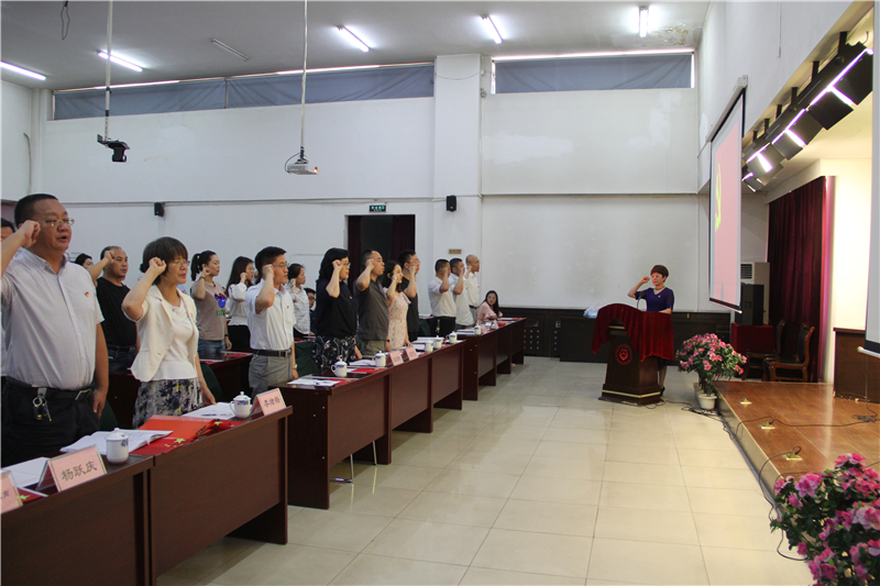 全体人员在雄壮的国歌声中抒发爱国主义情怀,学院立弓设计院党支部书记敬麒麟致欢迎词;随后全体党员在鉴定培训教育党支部书记杨跃庆的领誓下重温入党誓词。
