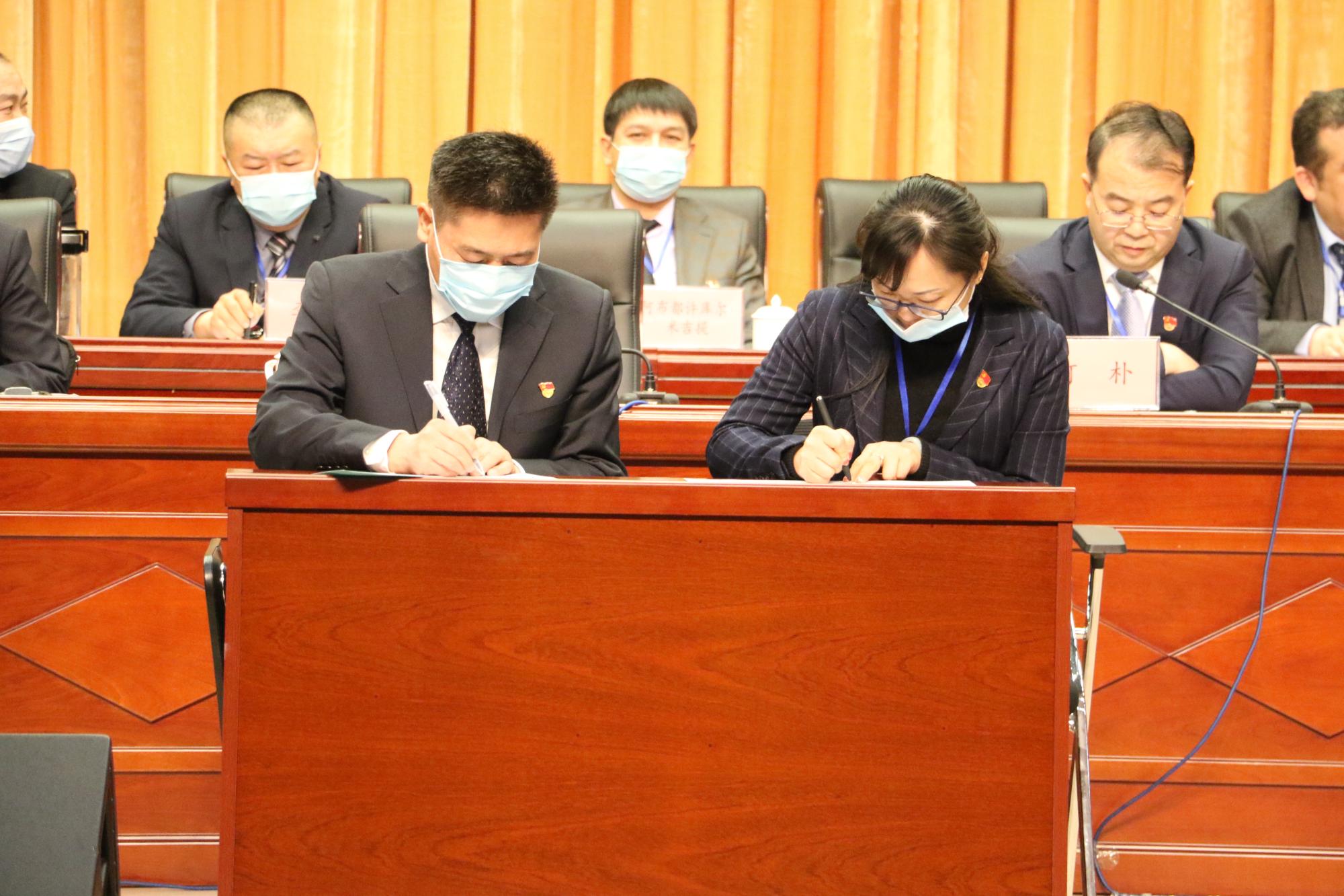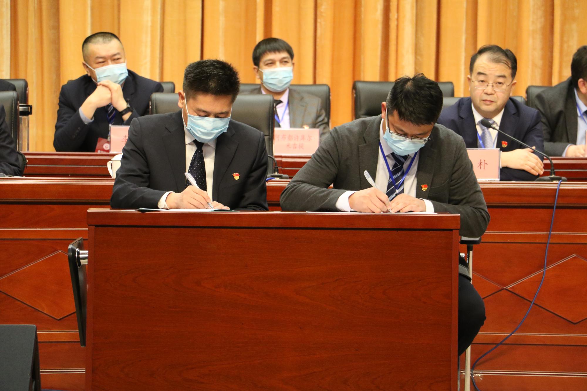 何朴主持第二阶段会议。会议签订了《新疆交通职业技术学院2022年重点工作目标责任书》。