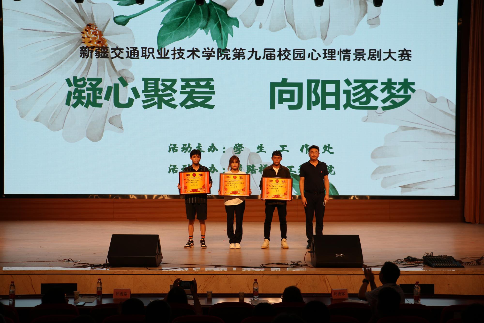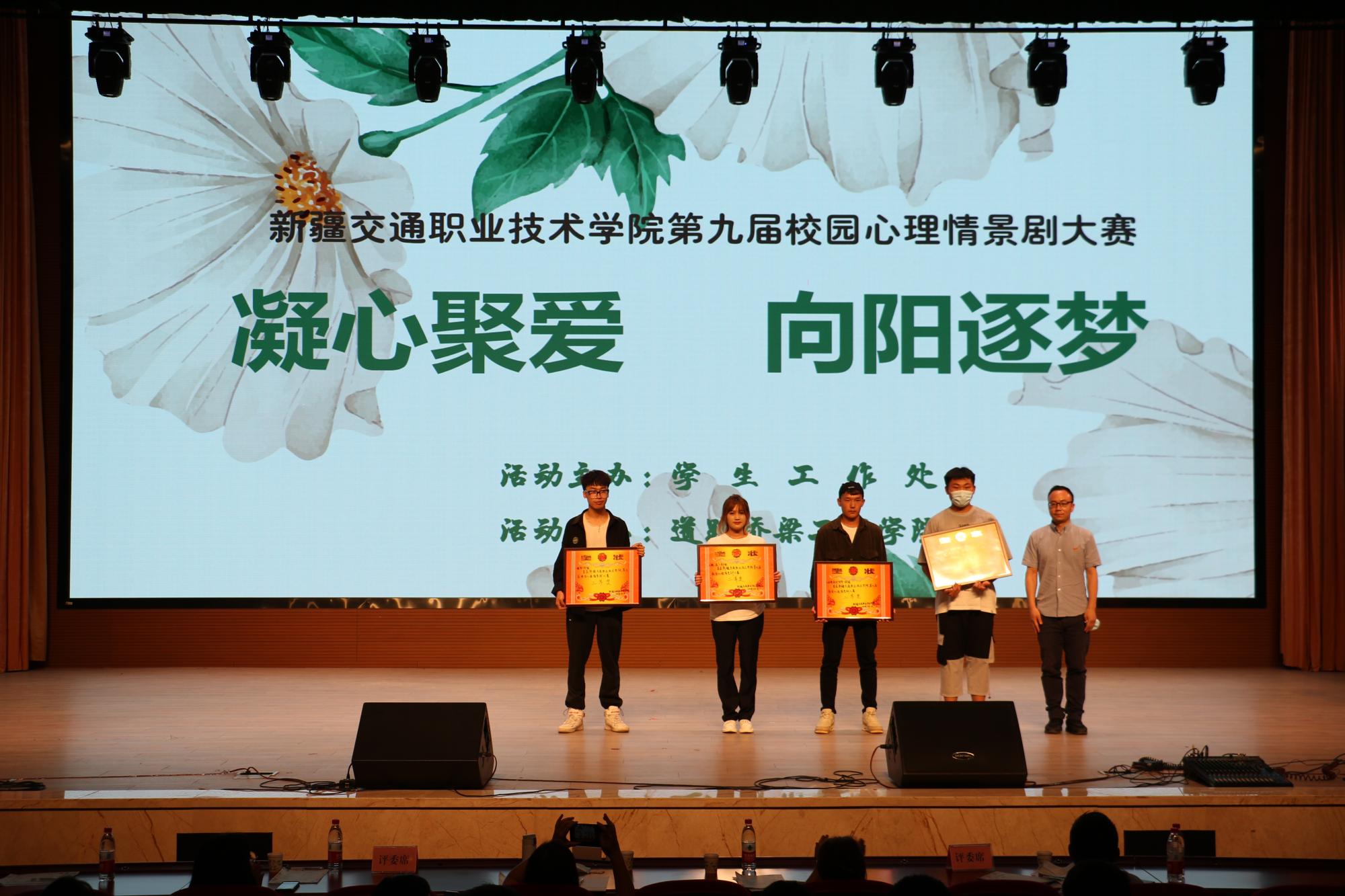 经过紧张的角逐,道路桥梁工程学院《盛不盛开 花都是花》获得一等奖;大学生心理健康协会《蝴蝶》、汽车工程学院《理想之花绽放》获得二等奖;道路桥梁工程学院《你的样子就是中国样子》、运输管理学院《好想爱这个世界》、人工智能工程学院《醒悟》、机电工程学院《破“疫”》获得三等奖。道路桥梁工程学院《盛不盛开 花都是花》荣获最佳剧情奖;人工智能工程学院《醒悟》荣获最佳表演奖。