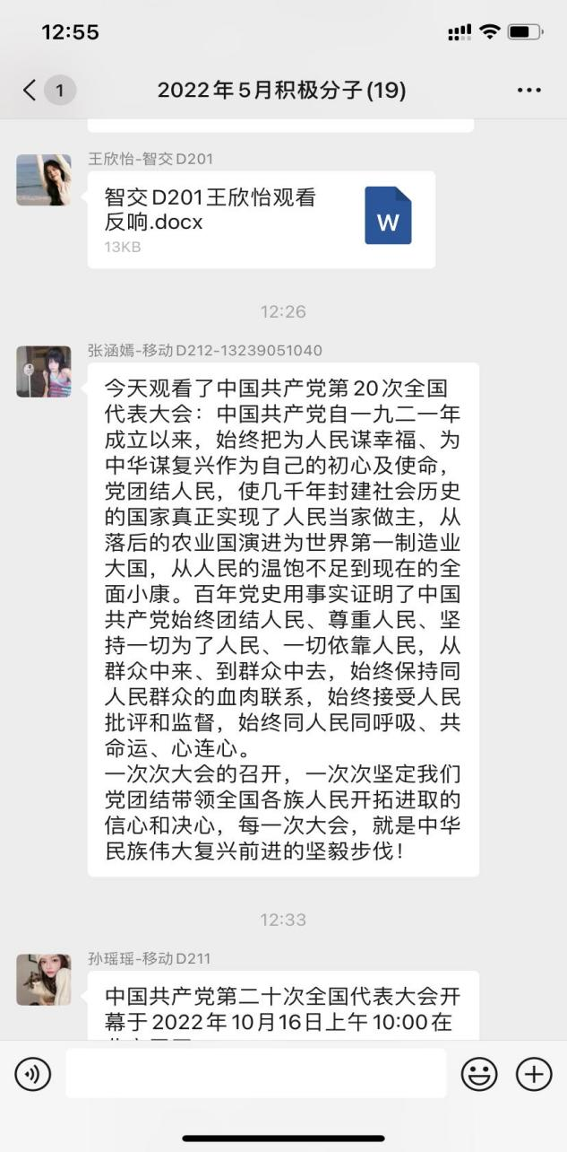 人工智能工程学院智交D203班的齐泽学生说道:“今日观看了党的二十大会议直播,深有体会。作为新时代的青年人,又是一名中共预备党员,出生在祖国快速进步的新时代,也见证了两个一百年计划的实现,我们是幸运的一代,也是重要的一代,我们要用自己的力量帮助祖国顺利完成建设社会主义现代化强国,听党话,跟党走!”