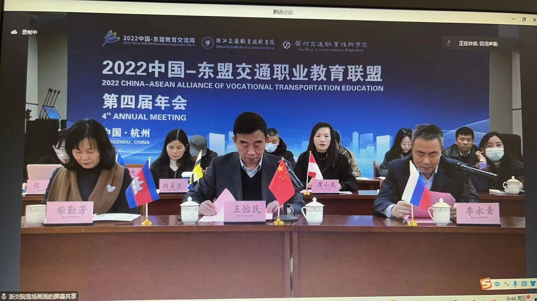 会上,浙江省教育厅国际处处长蓝晶晶、浙江交通职业技术学院党委书记孙校伟,以及联盟交流周秘书处、柬埔寨工业发展协会等有关领导代表向大会致辞;联盟理事长王怡民向大会作联盟工作报告并宣读有关文件。7家中外方代表分别在线上线下分享合作成果和成功经验。学院党委书记王瀚作为新当选副理事长单位代表作交流发言。