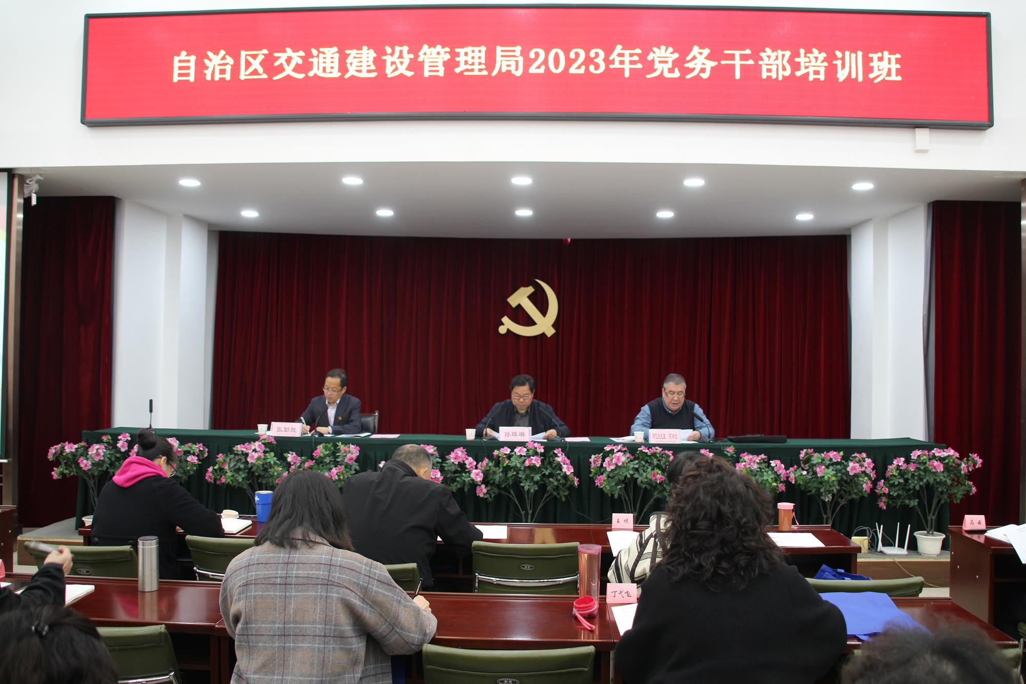 为贯彻落实自治区2023年交通运输工作会议精神,以实际行动提高党务干部队伍的服务意识、服务本领,发挥好党员的先锋模范作用,3月23日上午,由自治区交通建设管理局主办,新疆交通职业技术学院承办的自治区交通建设管理局2023年党务干部培训班在学院正式开班。