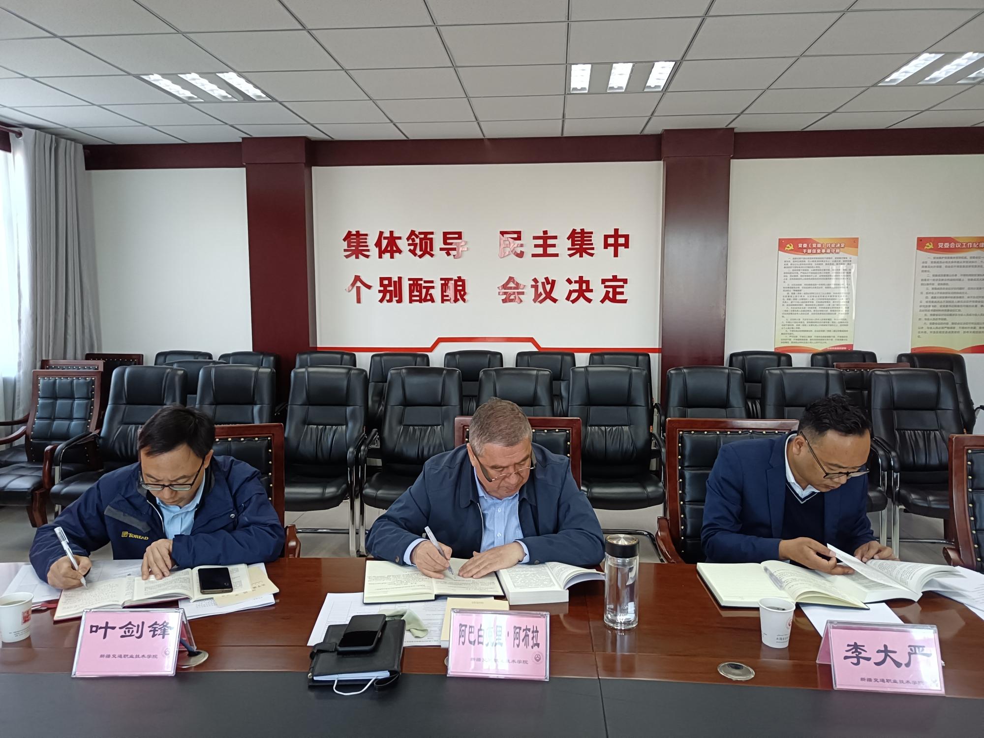 学院党委书记王瀚表示,学院党委班子成员要将理论学习贯穿于主题教育始终,紧密结合学院工作实际,牢牢把握总体要求,锚定目标任务,进一步夯实拥护“两个确立”、做到“两个维护”的思想根基。王瀚指出,党员领导干部要走在前、做表率,带头先学一步、学深一层,塑造“头雁”效应,为广大党员理论学习做示范、当标杆。要用习近平新时代中国特色社会主义思想武装头脑,科学有力指导调查研究、专项整治、为民办实事等实际工作,推动解决学院改革发展稳定中的难点、堵点、痛点,做到两手抓、两促进,切实把主题教育成效转化为推动学院高质量内涵式发展的实际行动。