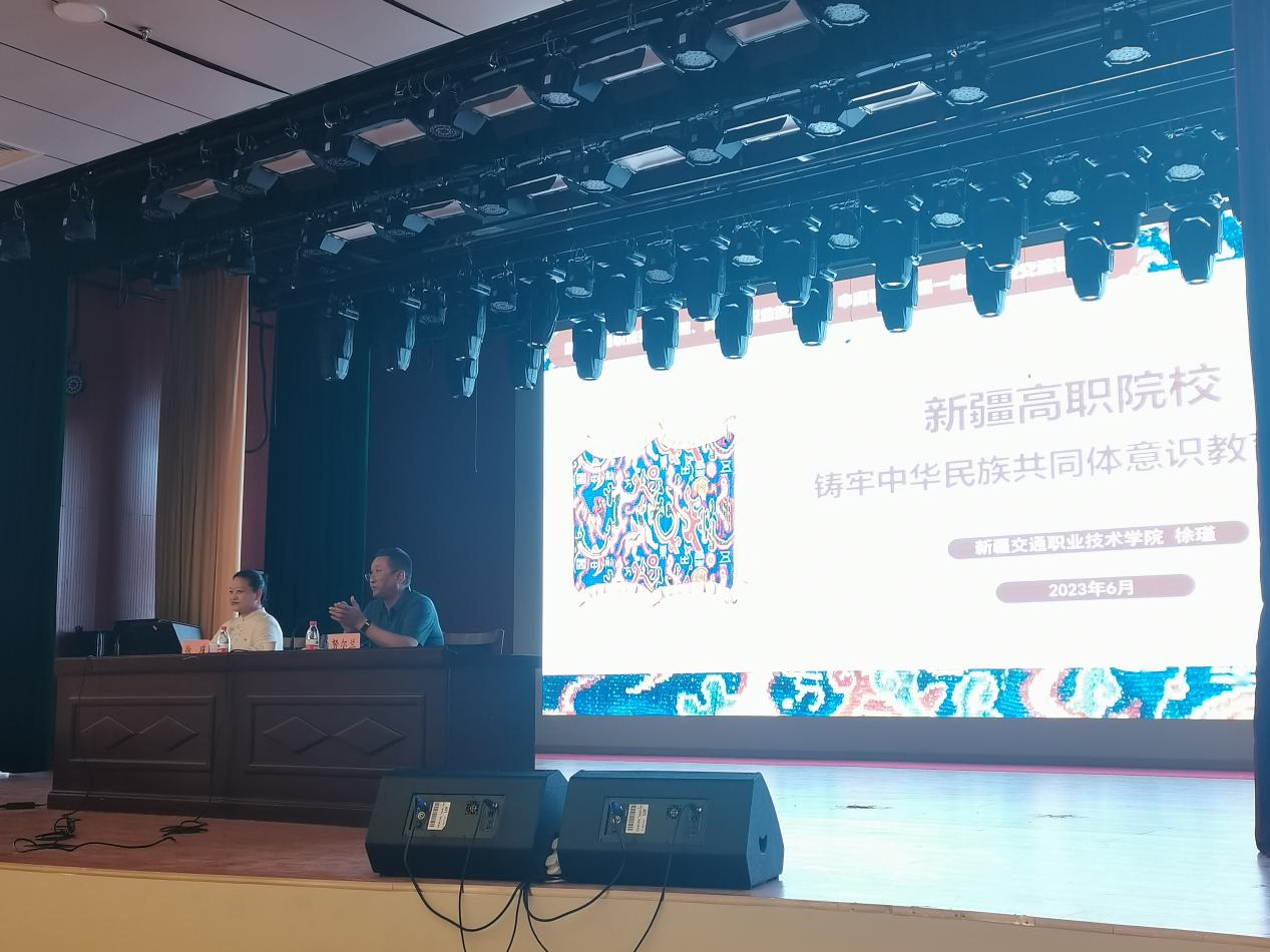 徐瑾副教授作了题为《新疆高职院校铸牢中华民族共同体意识教育路径》专题讲座,她从中华民族共同体意识形成的历史进程、铸牢中华民族共同体意识的重大意义、新疆高职院校铸牢中华民族共同体意识教育路径三个方面,梳理习近平总书记关于民族工作和铸牢中华民族共同体意识的重要论述,同时结合新疆高职院校实际和《简明新疆地方史教程》课程建设典型案例,对新疆高职院校如何抓好民族团结进步教育,有形有感有效地推进中华民族共同体意识教育提出了建议。