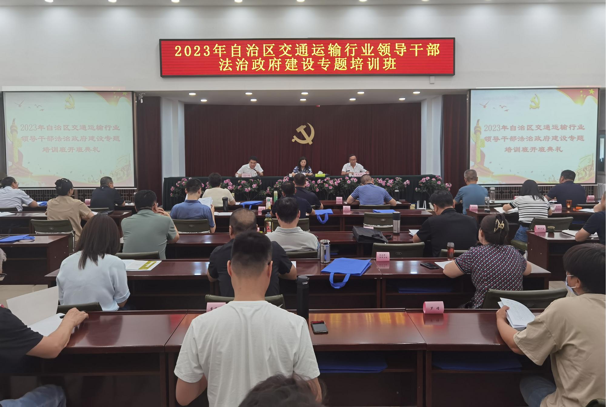 8月21日上午,由自治区交通运输厅党委主办、新疆交通职业技术学院承办的2023年自治区交通运输行业领导干部法治政府建设专题培训班在学院正式开班。