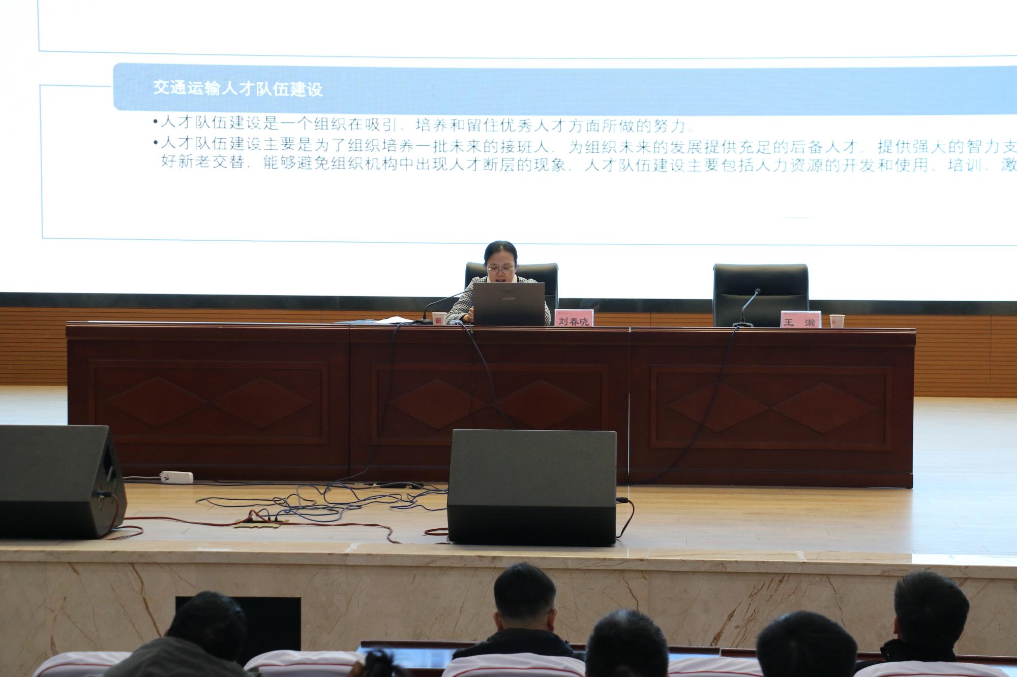 12月11日下午,学院邀请自治区交通运输厅人事处副处长刘春晓同志作了题为《新疆交通运输行业人才队伍发展现状及展望》的专题讲座,讲座由学院党委书记王瀚主持。