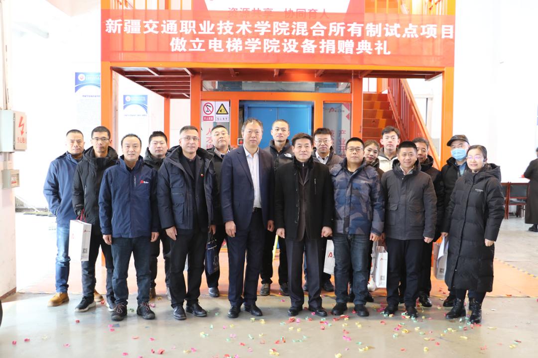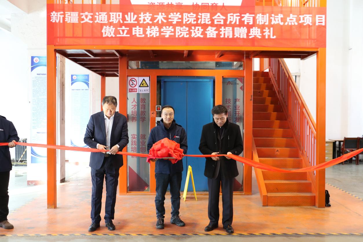 12月14日,乌鲁木齐市傲立电梯有限公司向新疆交通职业技术学院捐赠了价值1159199元的电梯教学实训设备并举行了捐赠仪式。