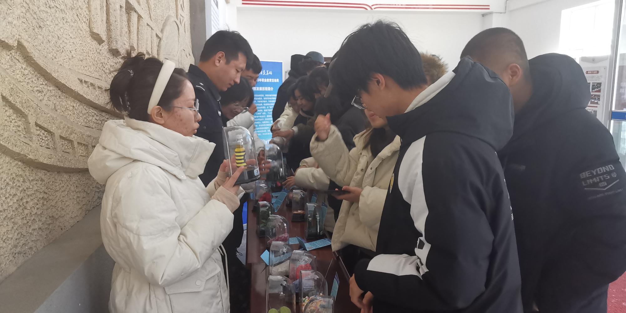 课后学生们参观了毒品仿真模型,学生们近距离参观各式各样的毒品,惊叹毒品种类繁多,新型毒品外观真假难辨,理解了毒品伪装的“高明”,懂得了毒品的危害之大。