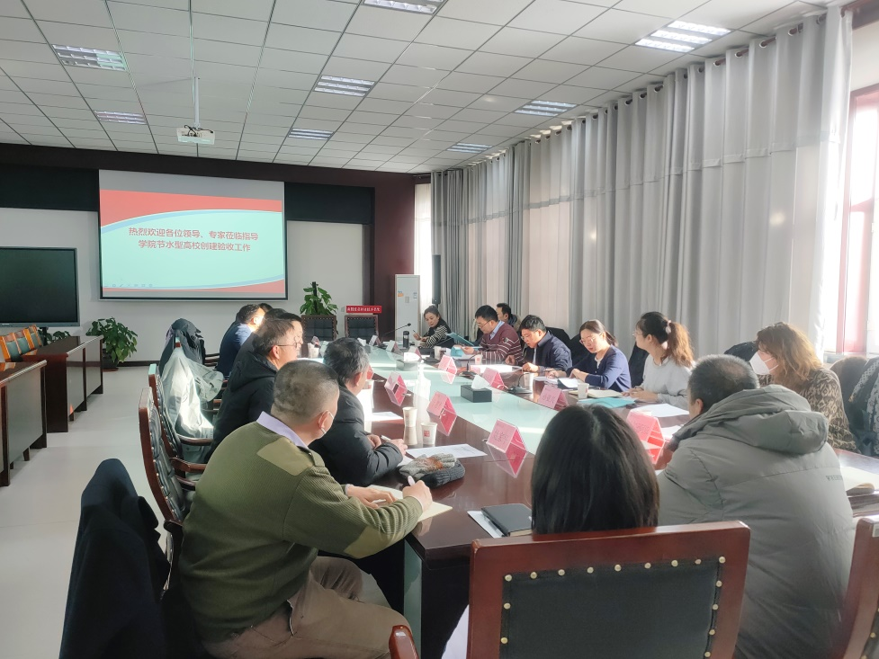会上,相关处室负责人向验收组详细汇报了学院节水型高校创建工作开展情况。验收组对学院节水工作给予了高度评价,充分肯定了学院采取的一系列节水措施以及所取得的成效,最终学院通过验收。