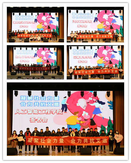 对抗艾滋我先行。12月11—15日,在学院产教楼一楼大厅,志愿者们连续5天,提前布置好防艾横幅,对同学们耐心宣讲艾滋病防控知识,呼吁大家增强防范意识,活动得到同学们的积极响应和支持,纷纷在横幅上签名,表达自己对防艾工作的支持和决心。