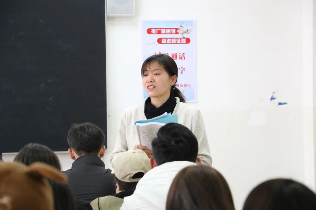 课堂上,师生们积极互动交流,大家发言踊跃。机电工程学院机电D221班木尼热木·萨吾尔江同学说:“我们学习国家通用语言文字,不仅要把它当作交流沟通的工具,更要把它当作掌握知识、提升能力的工具。国家通用语言文字学好了,上课时老师讲的知识就会更好地理解。我深深地体会到,语言是增进各民族之间感情的良药,在和同学交流时能更准确更清楚地表达自己的想法,让我和同学之间多一份尊重,多一份了解,多一份包容。”