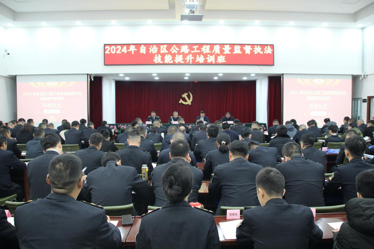 3月12日上午,由自治区交通运输综合行政执法局工程质量监督执法支队主办、新疆交通职业技术学院承办的2024年自治区公路工程质量监督执法技能提升培训班在学院正式开班。