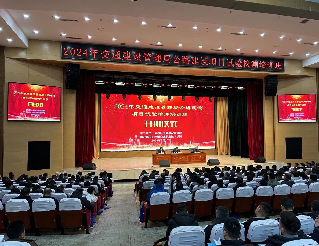 3月17日上午,由自治区交通建设管理局主办,新疆交通职业技术学院承办的2024年交通建设管理局公路建设项目试验检测培训班在学院正式开班。