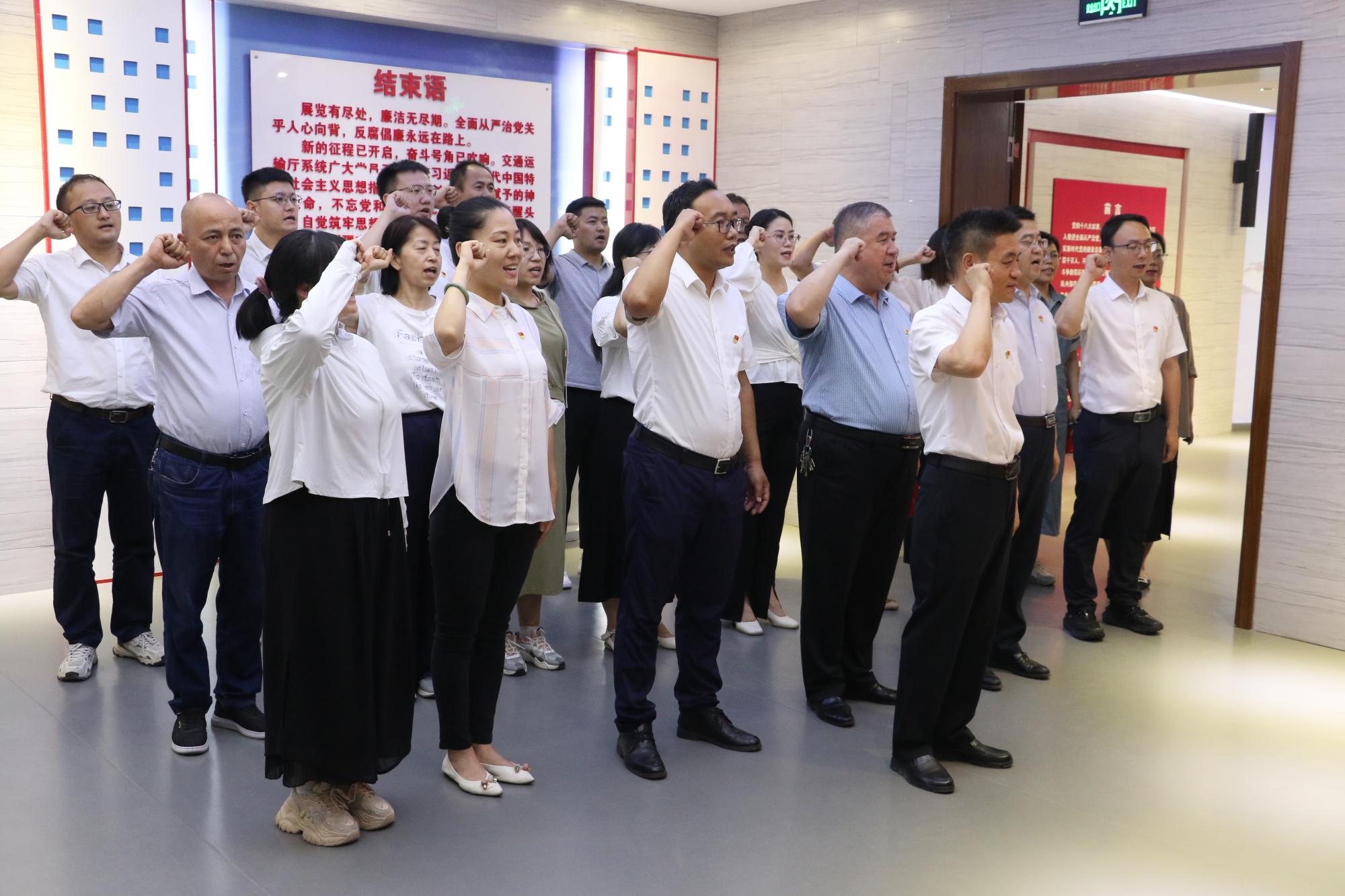参观结束后,在党委书记王瀚的带领下,党员干部面对党旗,郑重地重温了入党誓词。铮铮誓言,铿锵有力,长鸣耳畔,再次唤醒了作为共产党员的初心和使命。大家纷纷表示,要牢记誓言,践行承诺,时刻保持清醒头脑,始终绷紧廉洁自律这根弦,知敬畏、存戒惧、守底线,以身作则,加强党性修养,增强拒腐防变意识,在党纪学习教育中铸牢政治品格、夯实思想根基、锤炼过硬本领。