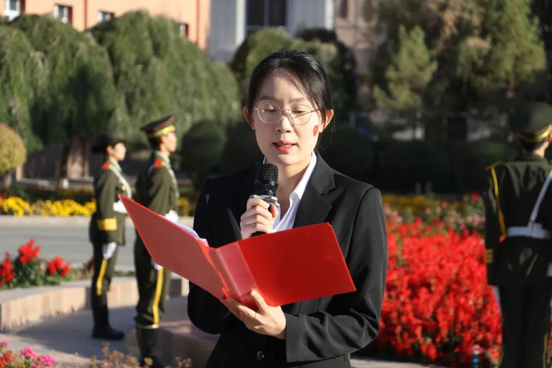 汽车工程学院班主任范柳婷老师、人工智能工程学院分团委书记祖鲁呼玛·米吉提老师作为教师代表国旗下献词,他们以青春之名、许国以行,感召着同学们享受着祖国的繁荣与强大时,更应铭记历史,不忘初心,将个人的理想追求融入到实现中华民族伟大复兴的中国梦之中。