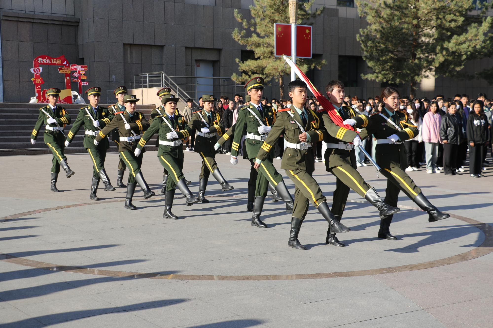 秋高气爽、风和日丽,中华人民共和国迎来75周年华诞,学院内红旗飘扬、鲜花盛开,隆重的升国旗仪式在图书馆前广场举行,各族师生汇聚在此,怀着激动的心情,共同期待庄严时刻的到来。