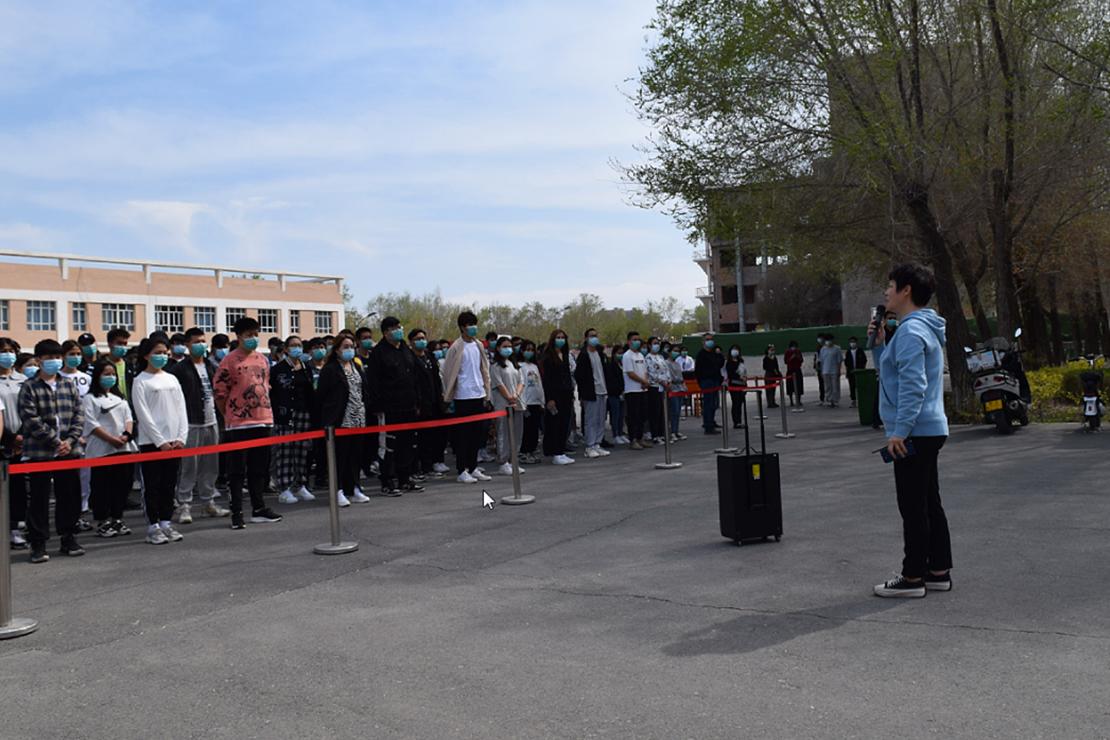 二号教学楼传出一阵急促的警报声,防震应急疏散演练正式开始。正在上课的同学们在任课教师的指导下,有序从教室撤离到指定的安全地带集中,演练全过程用时4分,所有师生顺利集结完毕。运输管理学院院长潘杰现场作了总结讲话。