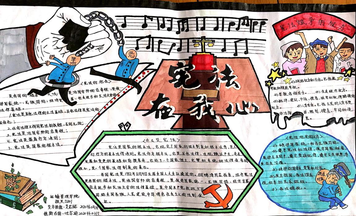 为深入贯彻习近平法治思想,加强法治思想的宣传与学习,4月21—27日,马克思主义学院举办了“知律法于心 守法律于行”宪法宣传月手抄报比赛。