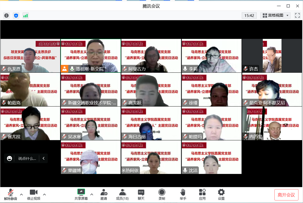 12月19日下午,马克思主义学院直属党支部通过腾讯会议,开展了“涵养家风 立德树人”主题党日活动。会议由支部组织委员潘祖刚主持,马克思主义学院全体党员干部参加了此次会议。