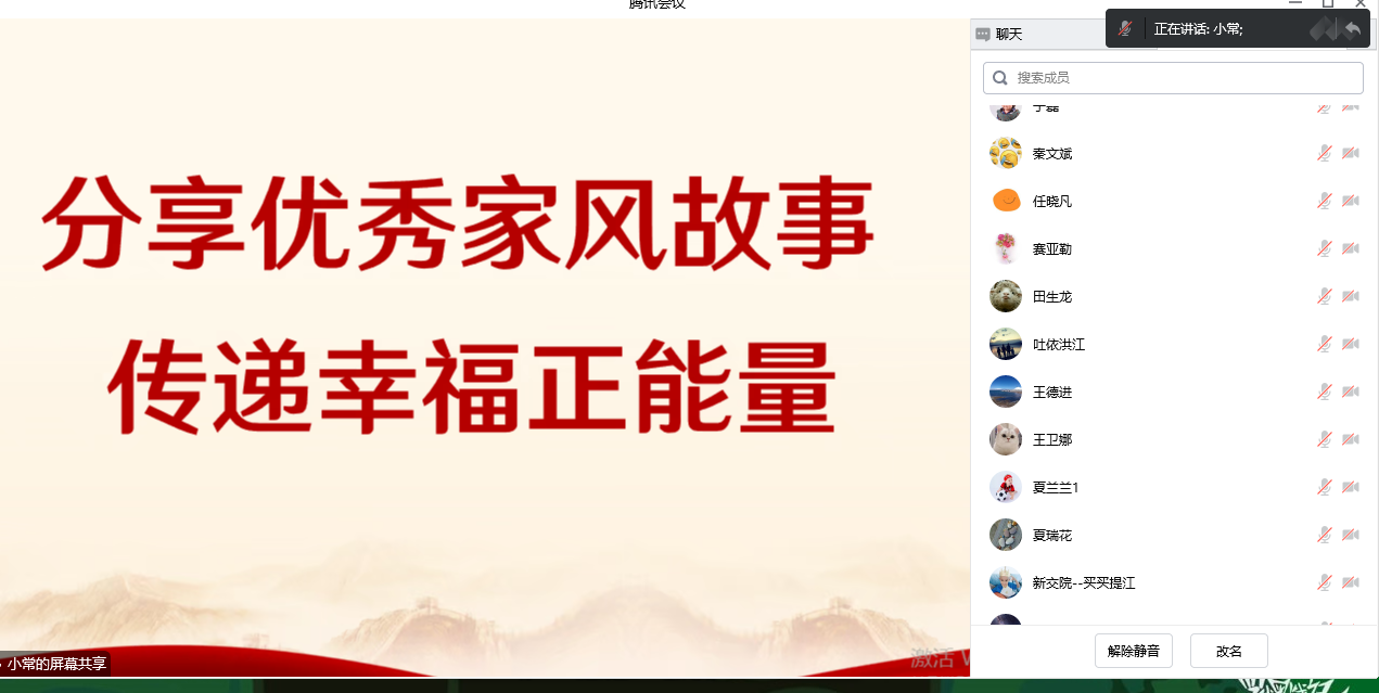 活动中,大家观看了《家风》《劳模的家风》等微视频,并以“分享优秀家风故事,传递幸福正能量”为主题展开积极踊跃的交流,有的联系自己的家庭、身边的亲人长辈,讲述廉洁家风故事;有的则列举古今名人的家风故事,既弘扬廉洁主旋律,又突出传承好家风。通过一个个朴实真切的事例,从不同层面、不同角度诠释了新时代廉洁家风的深刻内涵,传递了好家风蕴含的正能量。