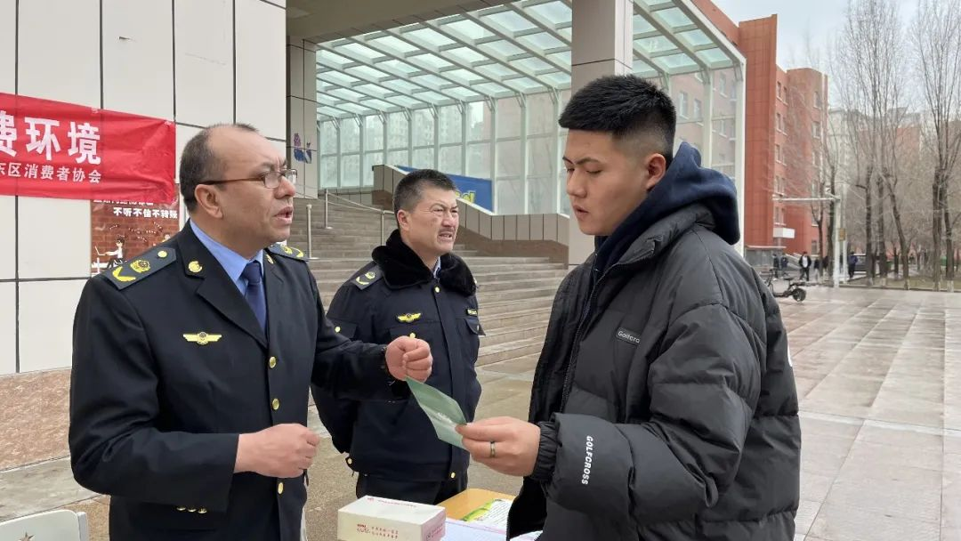 3月14日,学院保卫处联合米东区市场监督管理局、米东南路街道龙泉社区,在学院综合食堂门前开展以“3.15凝聚志愿力量,提振消费信心”主题消费维权知识宣传活动。