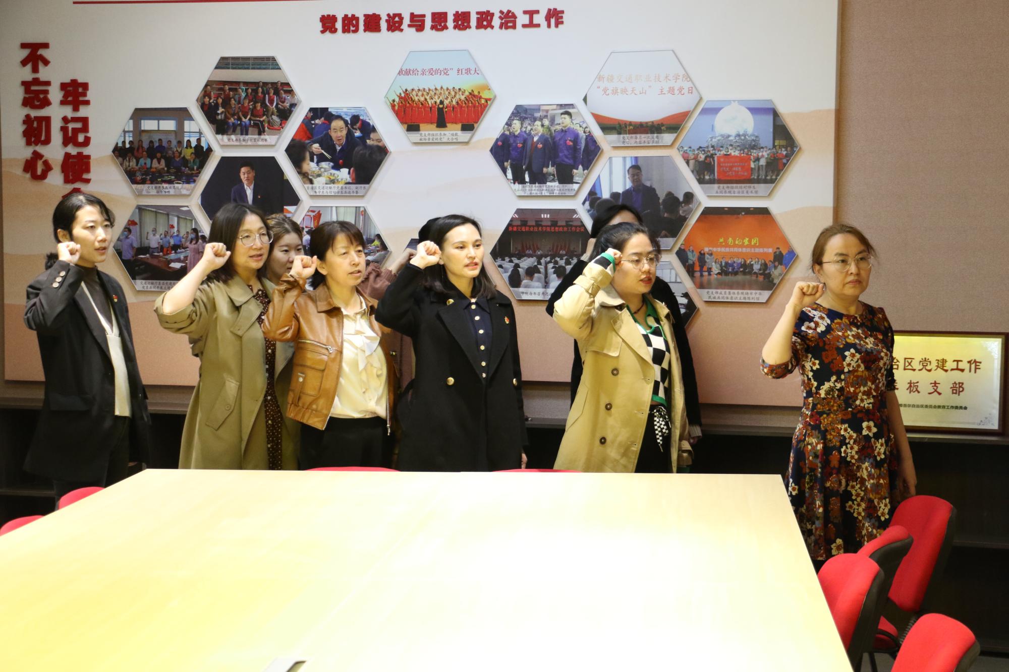 党员同志们在马克思主义学院院长李莉的讲解下参观了中国共产党党史馆、铸牢中华民族共同体意识馆等8个主题馆、3条主题长廊、1个文化厅及1个虚拟仿真思政教学体验中心。活动中,面对鲜红的党旗,全体人员高举右拳庄严宣誓,重温入党誓词,回顾入党初心,感悟初心使命。