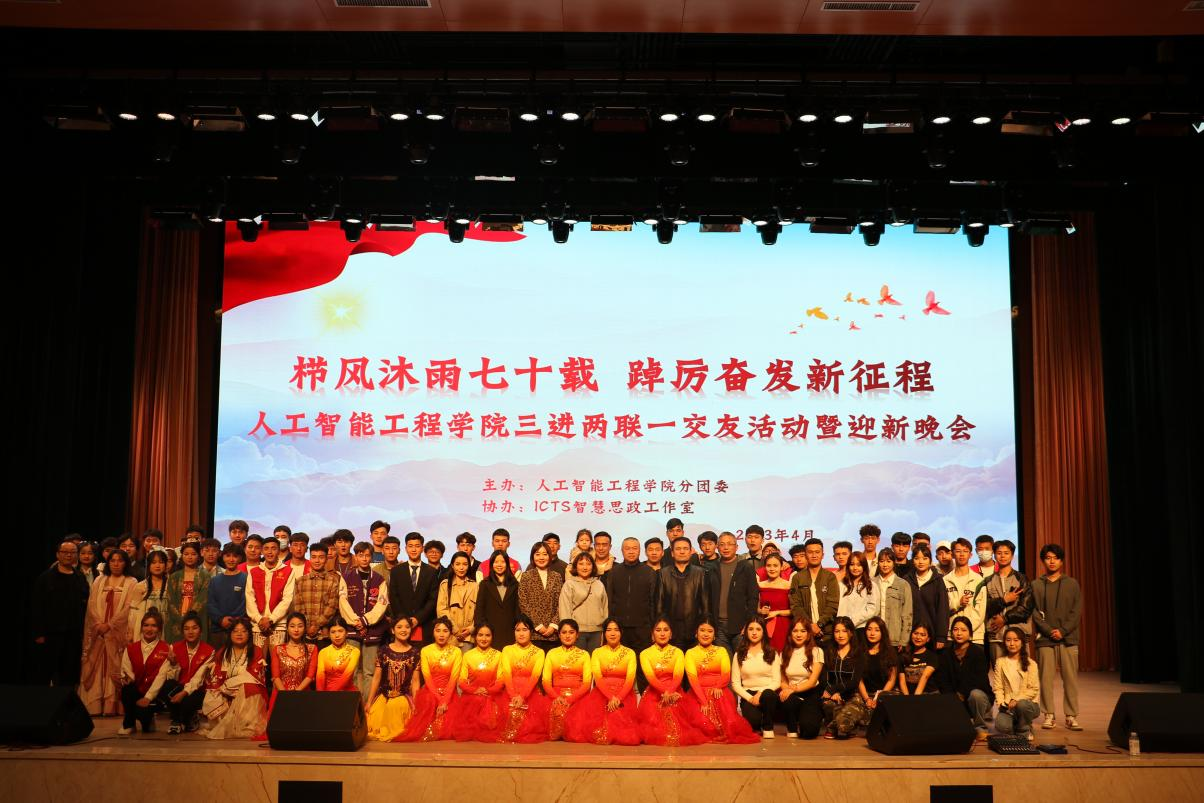 4月10日下午,由人工智能工程学院分团委、ICTS智慧思政工作室联合主办的“栉风沐雨七十载 踔厉奋发新征程”人工智能工程学院“三进两联一交友”活动暨迎新晚会在产教融合楼一楼大礼堂举行。