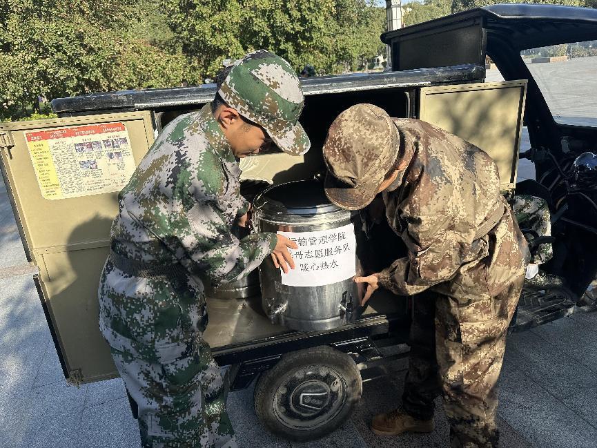 为提高分院学生服务保障工作,运输管理学院红·运名辅导员工作室、高原名班主任工作室和赵亮名班主任工作室组织在校9名退伍复学学生,于9月15日成立了运输管理学院“兵哥”志愿服务队,协助部队教官开展训练工作并且每日上下午为各连队配送热开水,向学生送温暖、送关爱,发挥“退伍不褪志、退伍不褪色”精神。