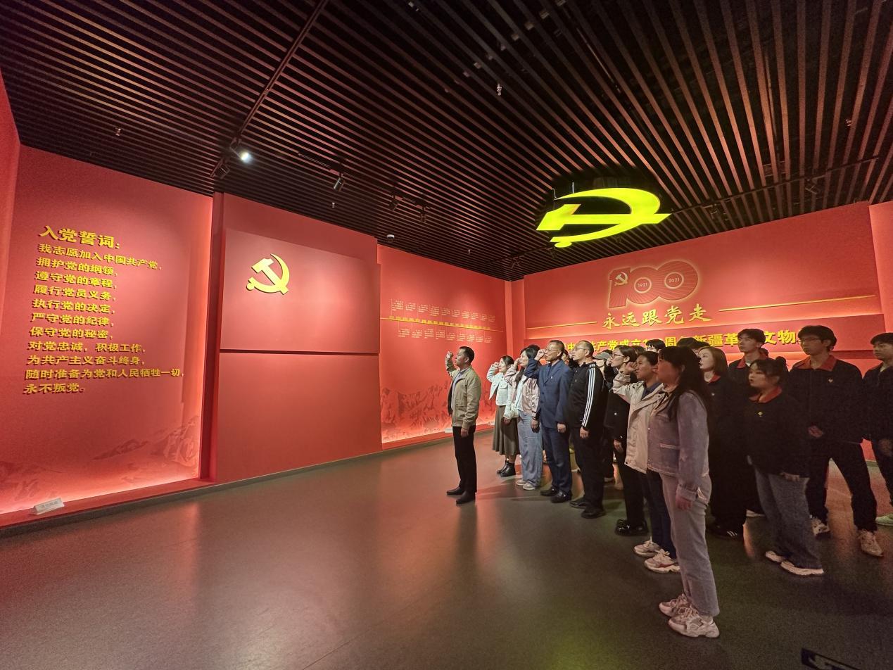 参观结束后,道路桥梁工程学院副院长席强伟同志带领全体党员在展馆党旗下重温入党誓词。在铿锵的誓言中,党员教师们的初心受到洗礼,理想信念更加坚定。