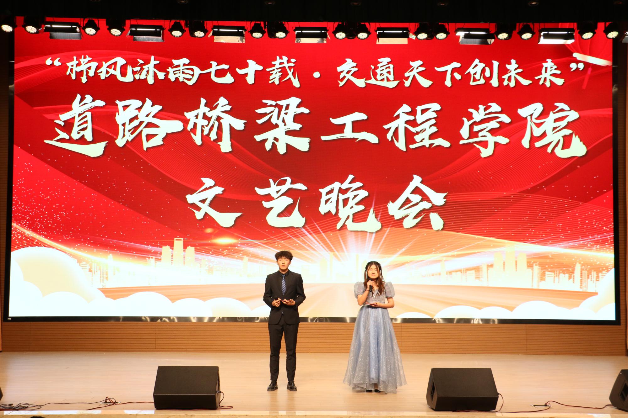本次晚会包含歌曲、舞蹈、小品、朗诵等多种艺术表现形式,由道路桥梁工程学院学生党支部联合“薪火”辅导员工作室共同承办,分院领导及师生共计700余人参加。