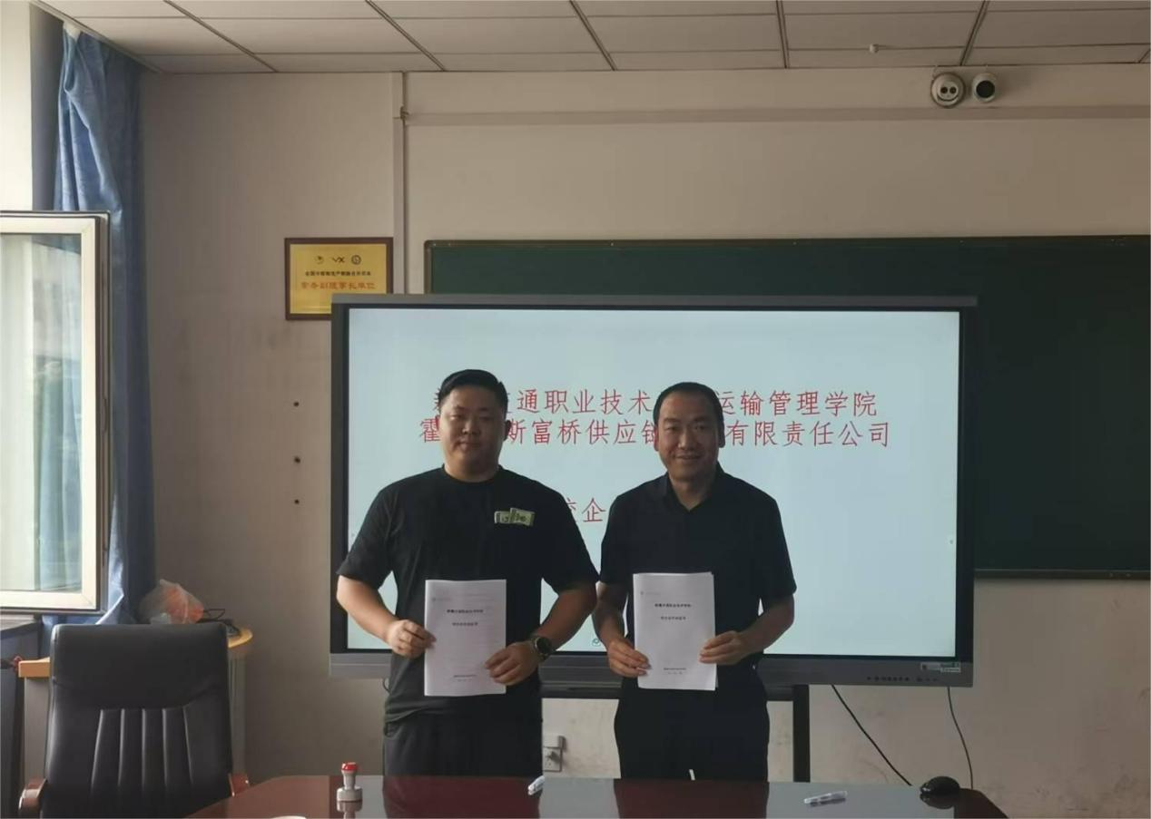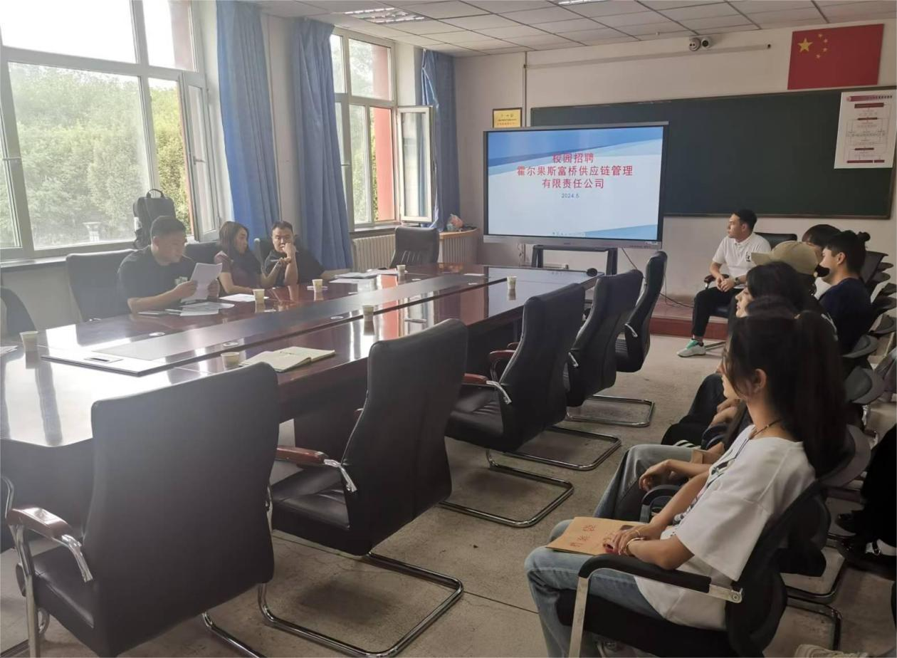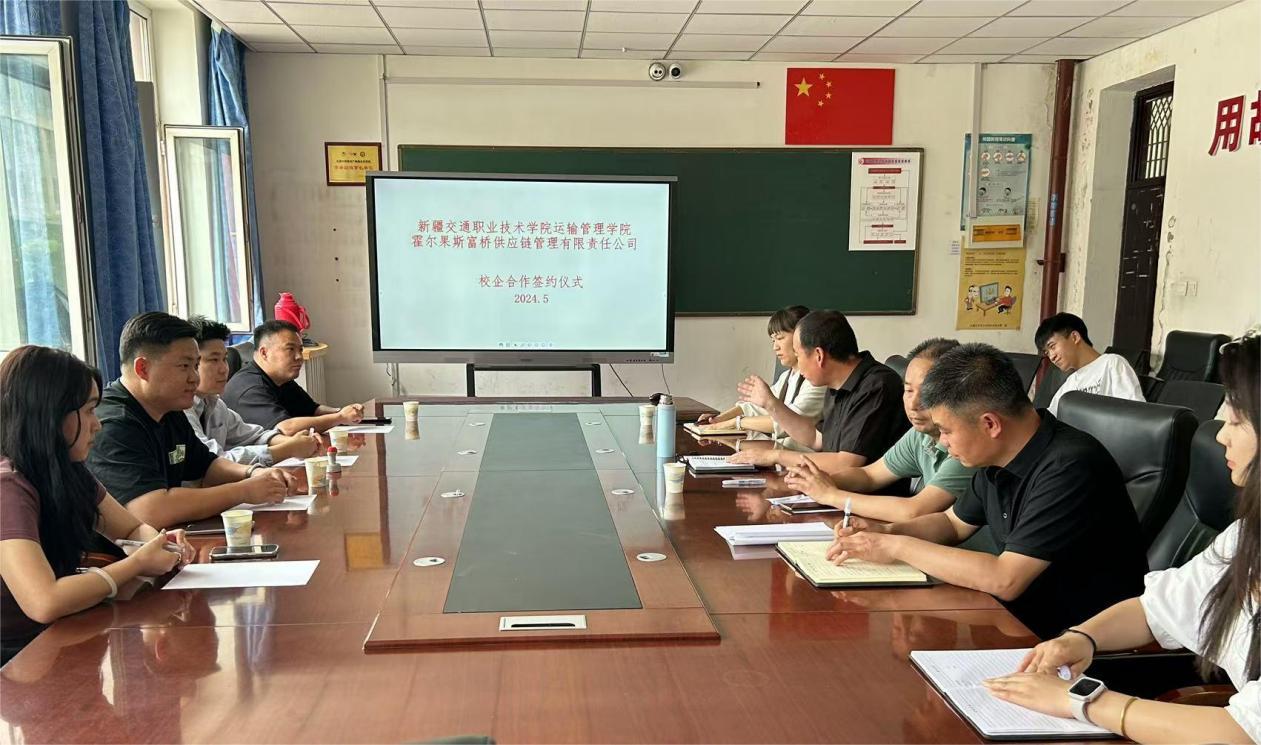 5月23日,霍尔果斯富桥供应链管理有限公司董事长程成一行4人到我校运输管理学院进行校企深度合作洽谈,运输管理学院党总支书记张军主持会议。