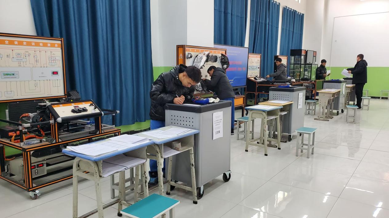 学院选派吐尔洪江·吐拉克、马尔旦·吐尔逊两位骨干教师赴英吉沙县中等职业技术学校,开展为期一周的“1+X”汽车运用与维修职业技能等级培训与考核。培训内容涵盖“汽车线路读图与电子元件检查”“启动与充电系统检查保养”“灯光与电器系统检查保养”“空调与舒适系统检查保养”等核心职业技能。在我院教师悉心指导下,学生们不仅深入学习了先进汽车技术知识,还通过实践操作显著提升了职业技能水平。