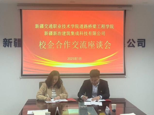 1月7日,为拓宽校企合作广度,增强学生实习就业针对性,提高人才培养质量,道路桥梁工程学院副院长热汗古丽·买买提带领道路与桥梁工程技术专业团队5人前往新疆新冶建筑集成科技有限公司进行座谈交流。