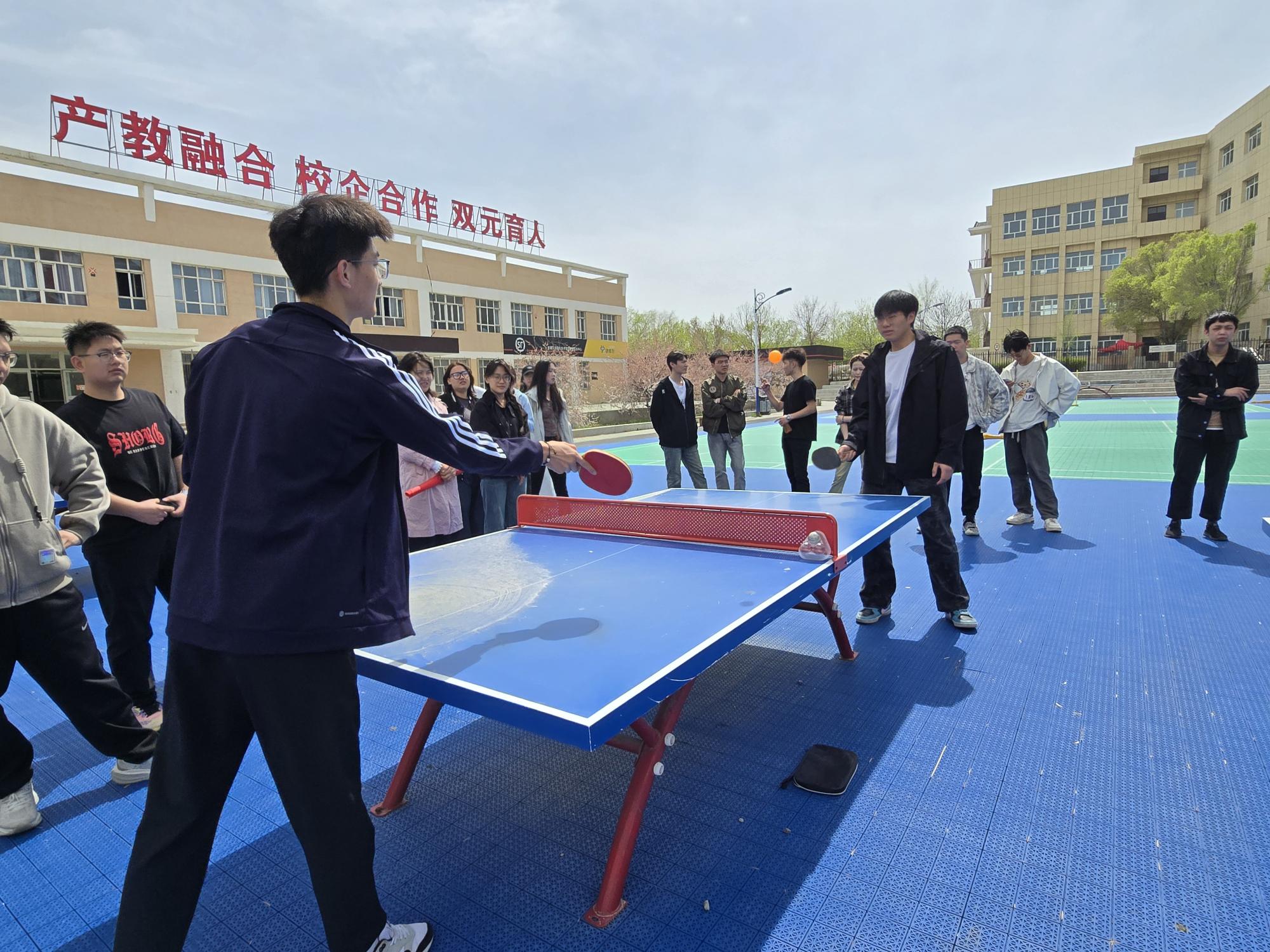 为丰富校园文化生活,增强学生体质,培养团队合作精神和积极进取的竞争意识,4月17日中午,董晋名班主任工作室联合红·运名辅导员工作室、时光漫影社共同策划并举办了主题为“‘乒’出欢乐,‘乓’然心动”的趣味乒乓球活动。