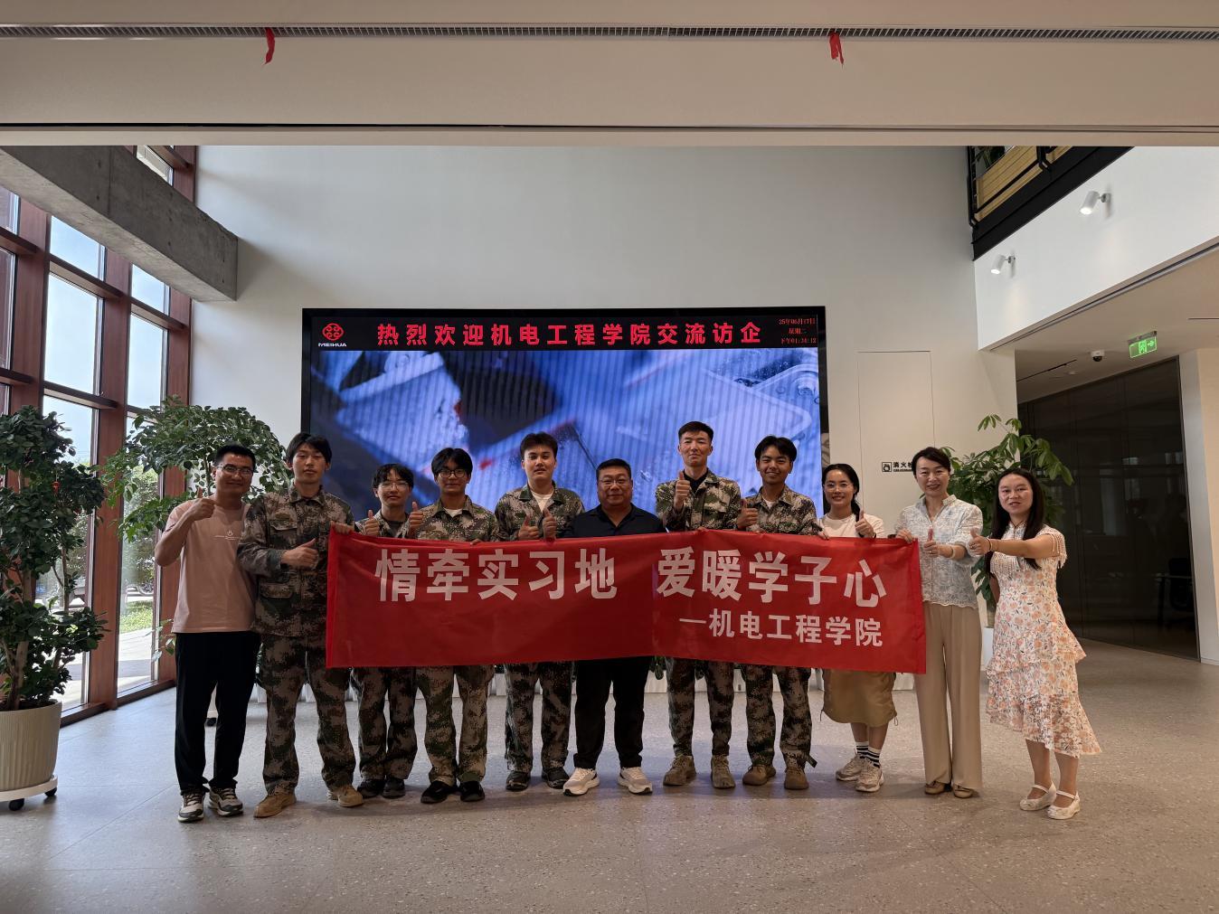 6月17日,机电工程学院教师团队赴新疆梅花氨基酸有限公司开展访企拓岗专项工作,并看望慰问在岗实习学生。时值全国第24个"安全生产月",学院以强化实习安全管理为重点,将走访调研与协同育人深度融合,全力保障学生实习安全有序推进。