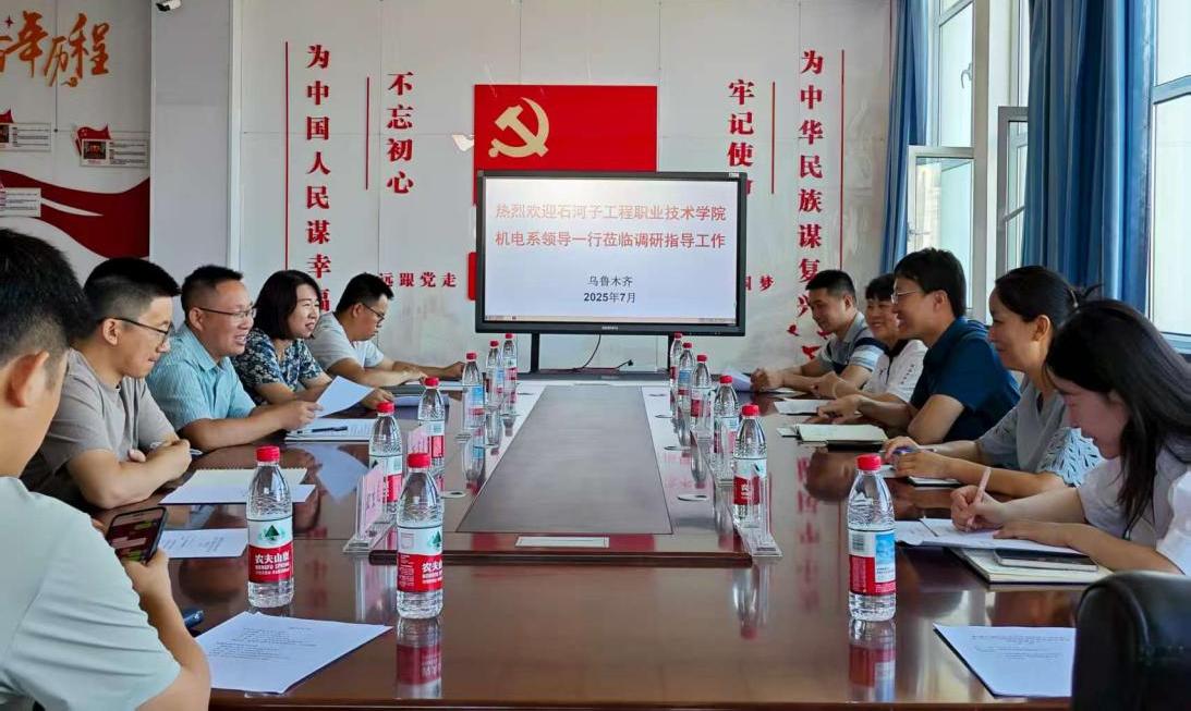 7月9日上午,石河子工程职业技术学院机电工程系主任张凌皓一行到访新疆交通职业技术学院机电工程学院,双方围绕专业群建设、人才培养等内容进行了深入交流。座谈会在机电工程学院五楼会议室举行,机电工程学院书记潘祖刚、院长赵丽及相关负责人参加了会议。